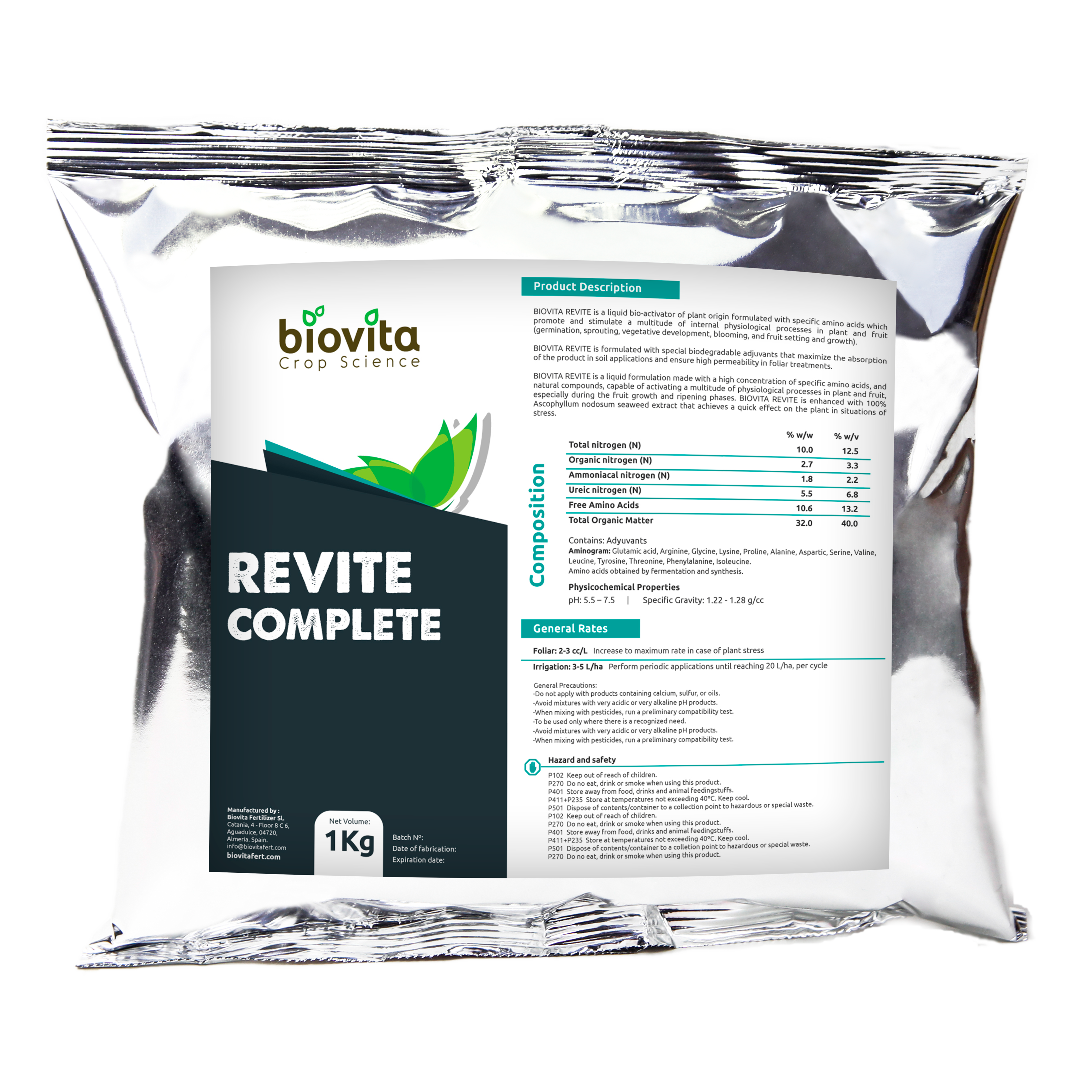 O REVITE COMPLETE é um produto formulado à base de NPK e enriquecido com aminoácidos e ácidos fúlvicos, desenvolvido para ativar os processos fisiológicos das plantas, com ação anti-stress contra as condições adversas para as culturas.