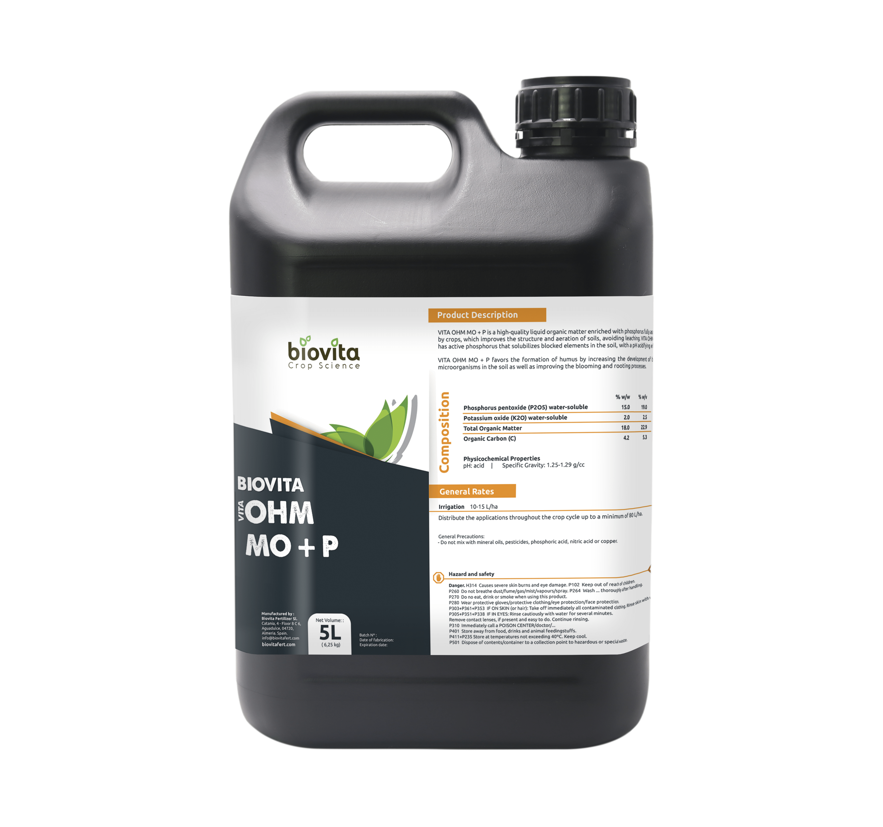 VITA OHM MO + P est une matière organique liquide de haute qualité enrichie en phosphore, parfaitement assimilable par les cultures, qui améliore la structure et l’aération des sols en évitant la lixiviation.